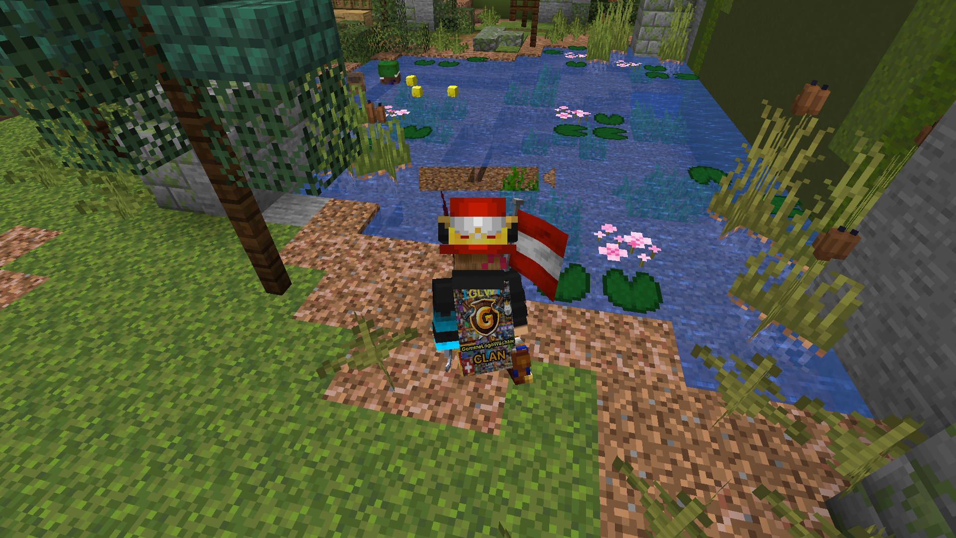 - Look through the nametag at the water or at the player with the cosmetics.