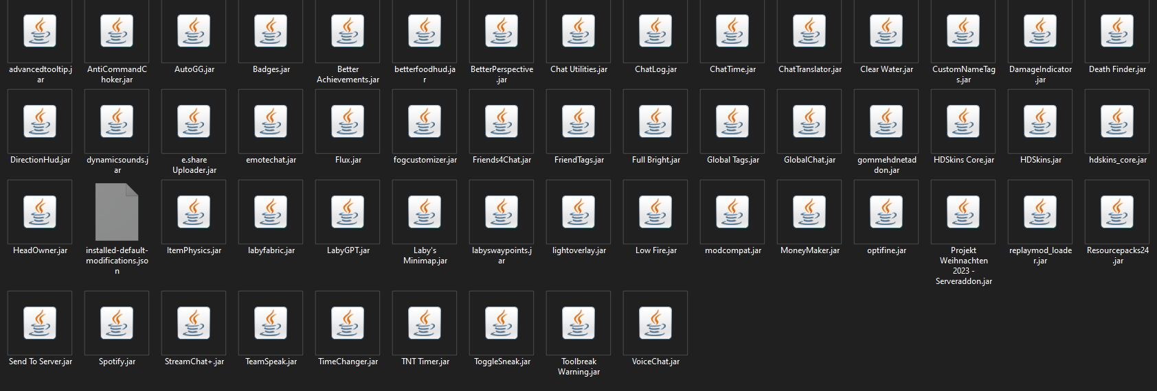 \Installed Addons: nearly all available Laby addons for 1.21.4 (all addons in screenshot)